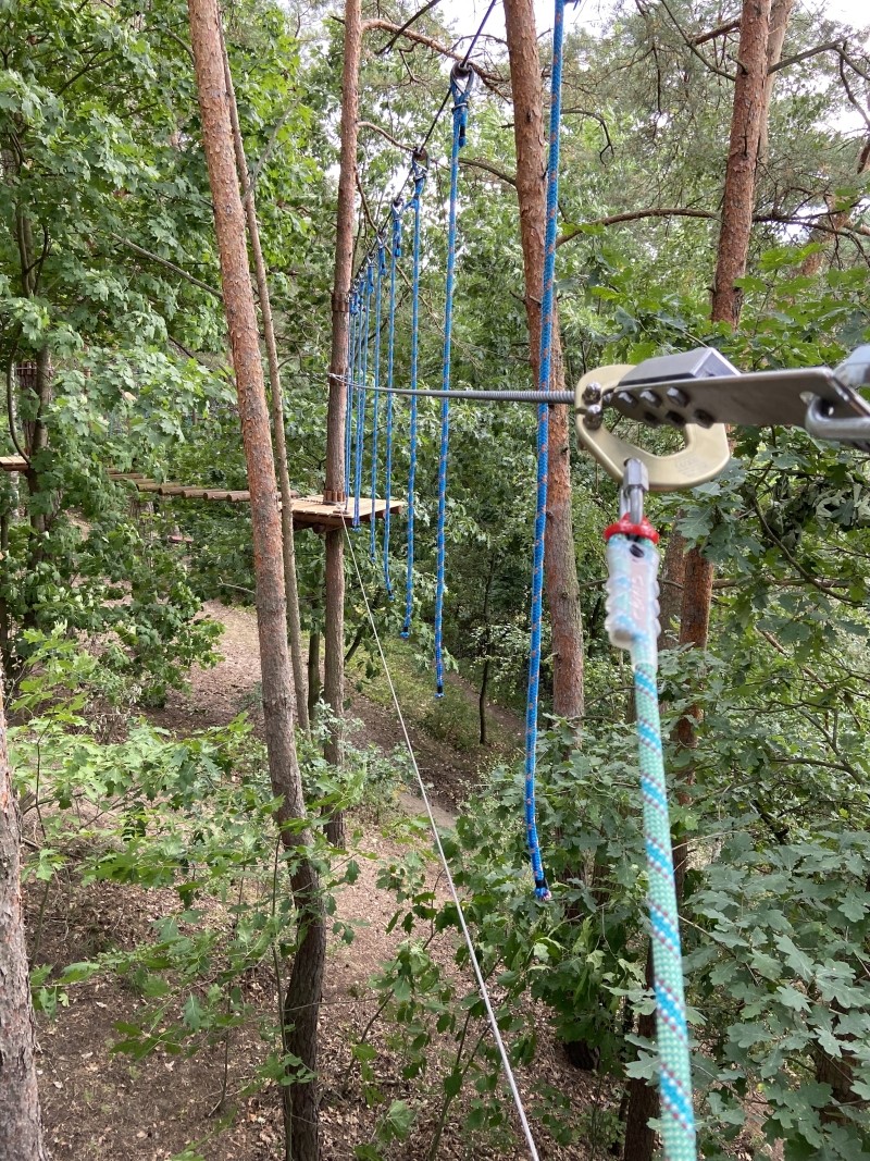 Trasy parku wyposażone są w asekurację ciągłą firmy vert voltige.