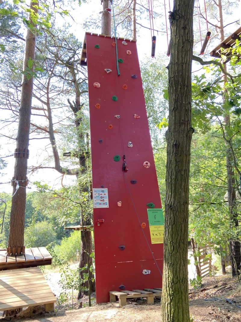 Aby wejść na trasę wysoką należy użyć urządzenie samohamowne wraz z zapiętym na nie hakiem asekuracyjnym.
